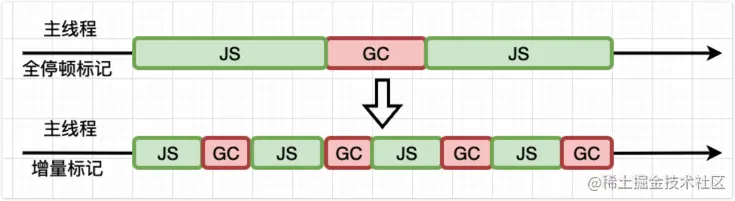 在 2011 年,V8 对老生代的标记进行了优化,从 全停顿标记切换到增量标记
